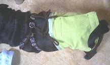 もんじの散歩用胴輪にヒモを通す事でもう絶対ずりさがらない