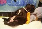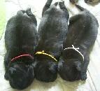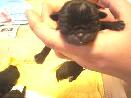 最後までわかめに首位を譲らなかった風ちゃん、 何でも1番にこなしたあんちゃん(クリステル)、 少しのことでもガクガク震えた臆病なルナ(プゥちゃん)、 生まれた瞬間から元気いっぱいだったわかめ、 あきらめないで頑張り大きくなったあんこ(エルメス)。 みんなが産まれた瞬間の事、それぞれの成長、一生忘れません。 次々と里親さんが決まっていく中、お父さんが気がつきました。 里親さんが選んだのではなくこの子達は自分で新しい家庭を選らんだって。 本当は他の子を希望して見に来たわかめママ。 けれど、わかめの強烈なアピールでわかめを選んだっけ。 他の人が見にきても知らんぷりで見向きもしなかったのにね。 クリステルも同じ。他に人には見向きもしなかったのにあの日だけは里親 さんの膝にスッポリ入って甘えていた。 エルメスも最後の最後まで他の人には心を動かさずにイヤ~な顔したり 寝てるだけだったりしたのに、最後に見に来てくれた里親さんにはピッタリ 寄り添って安心しきった表情を見せてたね。 きっとそれぞれの里親さんが来るのを待っていたのだと思います。 心配性の風ちゃんママには、姉妹で一番心配なく育った風ちゃんが。 ワンコ初心者のあんちゃん宅には、姉妹で一番優等生なあんちゃんが。 心配で仕方なかったエルメスには大家族の暖かい家庭が。 若くて綺麗なママには、ベッピンさんのルナが。 ハチャメチャで甘えん坊のわかめには、パワフルで元気なママが。 京都・東京・千葉・埼玉・神奈川のそれぞれの地で、家庭で、 愛情をいっぱい吸収して幸せをふりまく子に成長して下さい。 時々は写真も送ってね。 育てのババとしては、それだけが楽しみです。 みんな真っ黒で女の子だけという奇跡的な姉妹達。 世界で一番可愛い子供達♪ これまで、たくさんの励ましのメール・メッセージをくれた皆様。 本当にありがとうございました。 若くして5頭もの可愛い赤ちゃんを産み、暑さの中頑張って毎日お世話 してくれた牡丹、静かに見守ってくれたもんじ。お疲れ様でした。 さてさて、8月の青空の中巣立ちも終わり育児記録もおしまいです。 これからは、その後の子供達というコーナーができる日までお待ち下さい。 風ちゃんママ・パパ、あんちゃんママ・パパ、ルナママと御家族様、 わかめママ、そしてあんこ御家族一同様、何卒この可愛い子供達の事を 末永く宜しくお願い致します。 さて、みんなブラックだったのに、全員女の子というイマイチ押しの足り なかった、もんじ父ちゃんにもう一頑張りしてもらうか。 いつの日かみんなと再会できる日を楽しみにしています。 2005.8.12 もんじ・牡丹家族