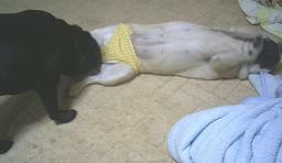 昨日から陰部を舐められるのに抵抗している様子の牡丹は