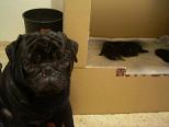 パパと三女 長女 長女・次女・四女3人娘 もんじと育児箱とその中に誰かあかちゃん (;・∀・)
